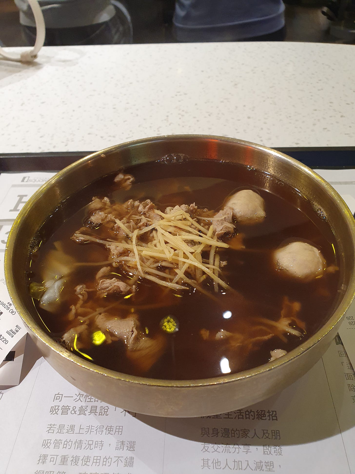 My stomach grumbles as I hold a tray of beef tendon noodles in the food court. The fragrant, meaty smell worsens the friction in my innards because there are no seats. I scan for any gaps between groups of schoolgirls with too-white makeup or flocks of tourists. Any circular stool, any spare corner.